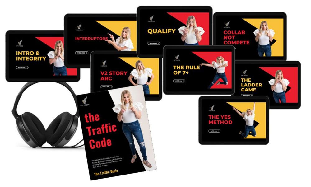 You have lifetime access to the Victress Membership with the 8 Video Modules of The Traffic Code + Full Color PDF Workbook